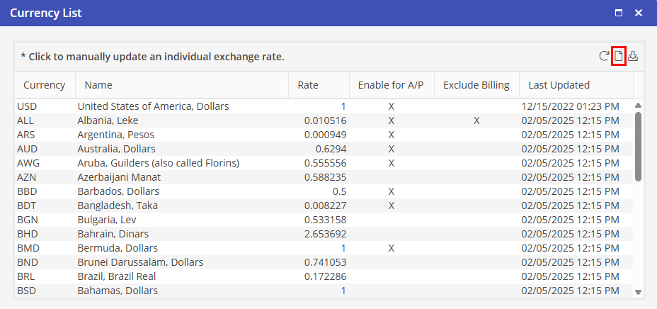 After adding a currency to the Active Currencies, proceed to Update Rates.