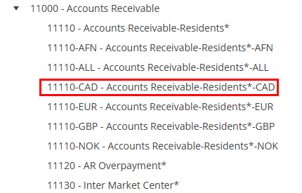 Upon adding currencies to Orion, an A/R account is created for each currency type.