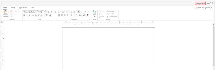 In the upper right hand corner, click Merge Fields. This will open up the Insert Merge Field list.