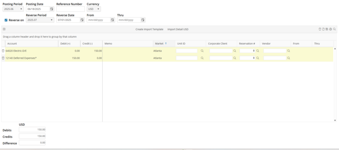 Expense : Select the expense account that was used on the original Payable. Since we are removing the expense from period 2021.01, we will credit this period. If we were moving the expense from period 2021.02 to 2021.01, we would debit the expense.