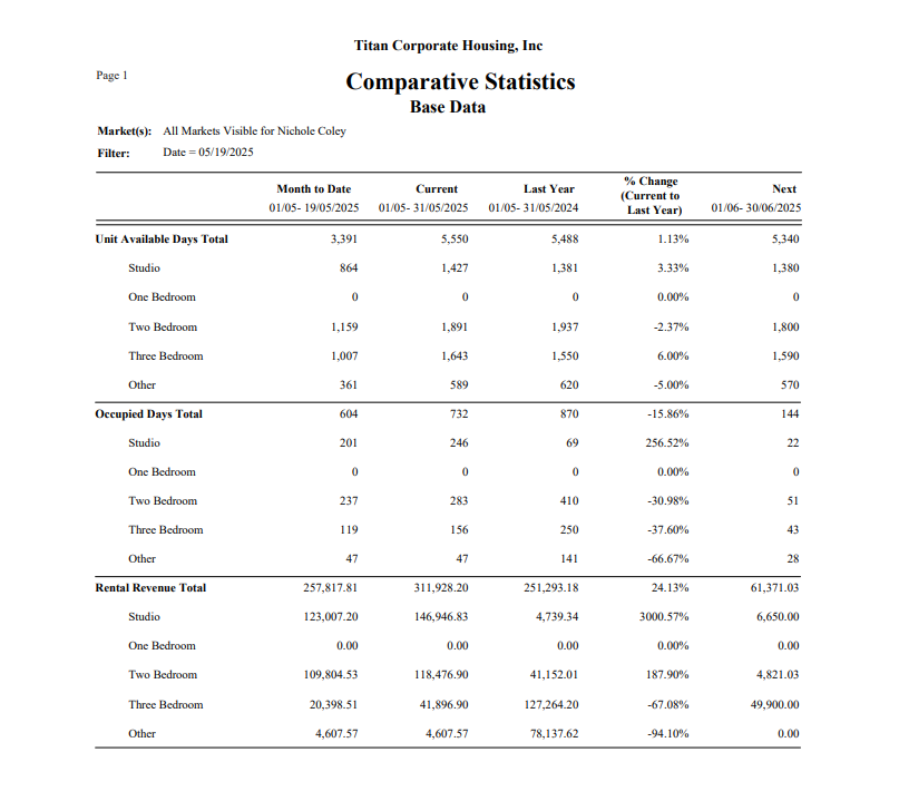 Rental Revenue : This is the same as in the Base Data Report (see above)