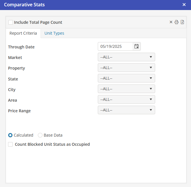 The Statistics reports include only projected Rent revenue generated in Units marked to include in statistics. The Rent Reconciliation may also include projected rent revenue for Units that are not marked to include in statistics.
