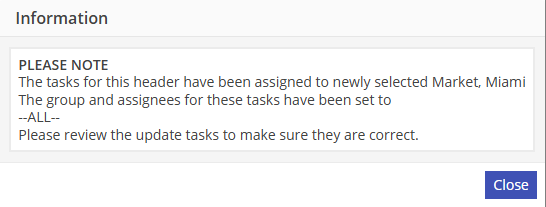 The Market will be set to the newly selected Market and the Group and Assignee will be set to –ALL--.