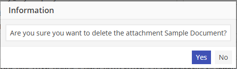 A prompt will appear asking “Are you sure you want to delete the attachment XXX?” Click yes to continue the deletion process. Click No to cancel the deletion process.