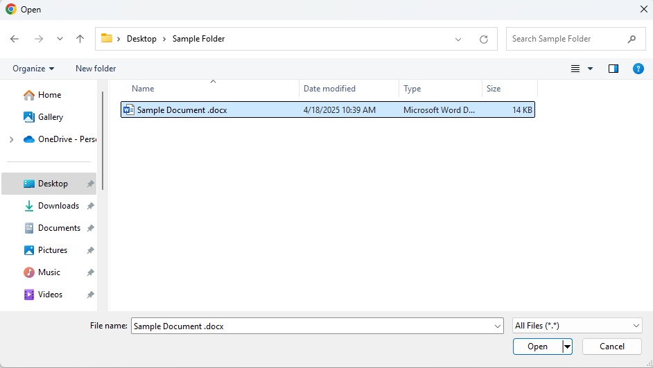 To remove an Attached File from the Attached Files window, select the document.