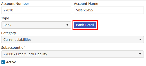 After the account has been saved, click "Bank Detail" to add the details of the account.