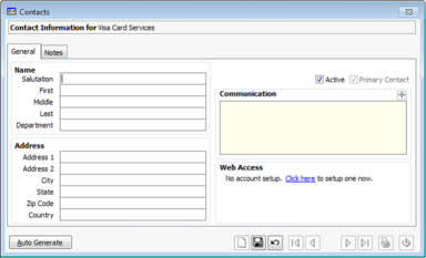 In the Contact section, a default contact has been automatically added based on the information entered to this point. Click the Name to open the Edit Contact screen.