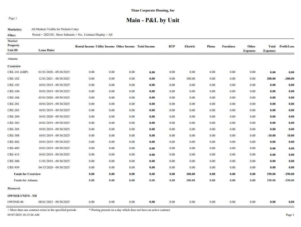 Generate the Report Create these reports to get a detailed Net Operating Income (NOI) per Unit or a utility audit. Direct Unit expenses must be posted for the P&L by Unit to be accurate.