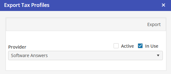 In Use indicates that only Tax Profiles that are selected on Properties will be exported.