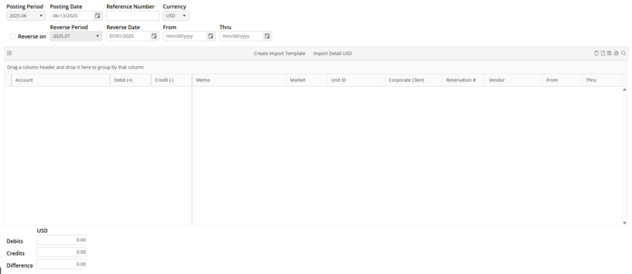 If a non-base currency is selected the amounts may be entered in base currency or non-base currency. The other currency will be updated with the current exchange rate. Exchange rates cannot be adjusted from the Journal Entry screen.