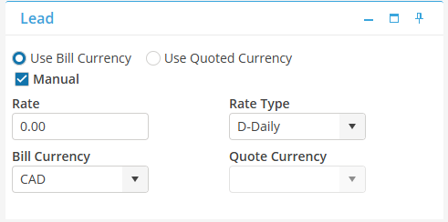 When Leads are created in the System, a Currency may be selected. The base currency for the database will populate automatically. For a lead that contains a Corporate Client with a default currency, the client Default Currency is populated. This can be found in the Lead Record, under the Lead Card.