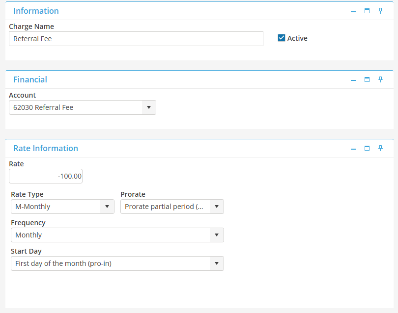 This should be setup with the same frequency as the Referral Fee is paid out. If this is paid daily, the Other Charge should be setup as Daily. If this is paid monthly, the Other Charge should be setup Monthly.