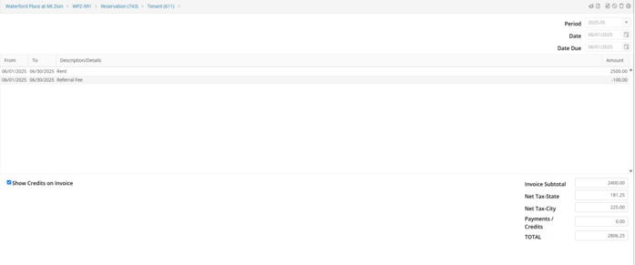 Select this Other Charge on the ledger associated with the Referral Fee. Make sure that the Rate is a negative amount. This will post as a discount on the invoice, reducing the revenue.