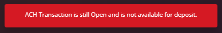 If a user attempts to select an open ACH transaction, the user will receive the following error: