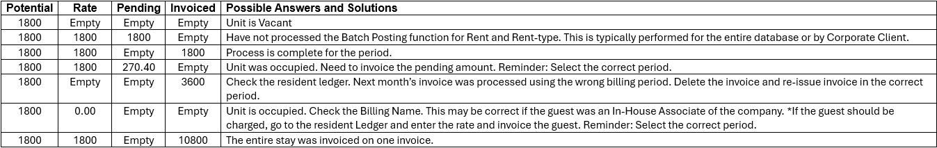 Potential reads from Unit/Financial/Rent Potential field and represents the guest billing amount that is desired.