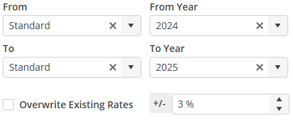 Overwrite Existing Rates If the rate is zero, the rate will automatically be updated with the copied rate. If the rate already contains a value that you would like to replace, select this option. This will overwrite all non-zero rates.