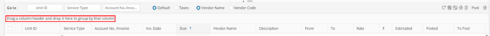 The payable grid may be sorted by any of the column headers. Select the header and drag to the section of the screen that reads, "Drag a column header and drop it here to group by that column"