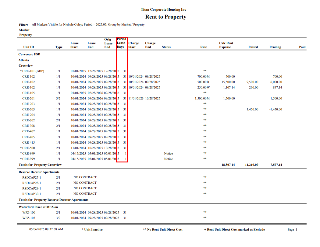 Period Lease Days These are the number of days in the reporting period in which this Unit contains a contract.