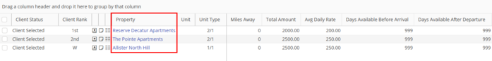 Property This shows the name of the Property. If you click on the name of the Property within the Sourcing Options screen, you will be taken to the Property record.