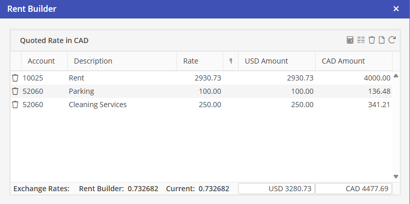 Quoting and Billing in Non-Base Currency - Using Rent Builder