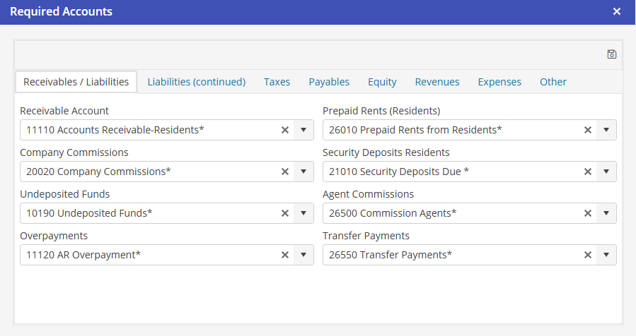 Receivables / Liabilities Tab