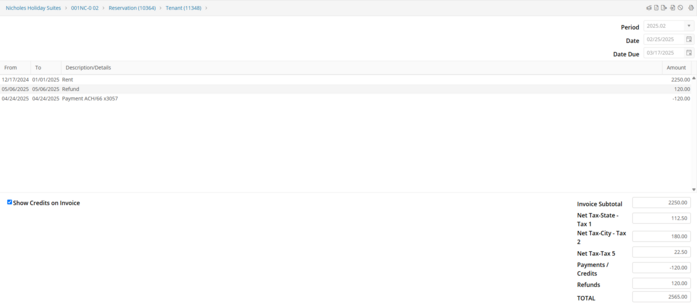 In the Reservation Activity Log screen, the refund details for the returned ACH payment will be displayed.