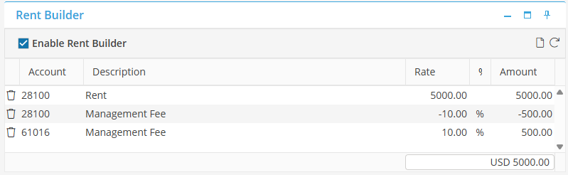Rent Builder should be setup on the Owner Units using the management fee percentage that will be collected monthly. This will auto-populate to the reservations once they are booked in the Owner Unit.