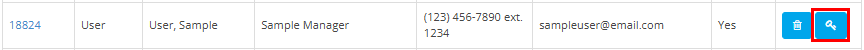 To reset a password for a User, navigate to the Existing User List from Account > Manage User. Select the key Icon in the line for the user.