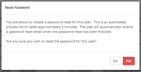 The system will display a verification that you are wanting to Reset a Password for this user. Select 'Yes'.