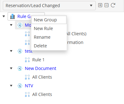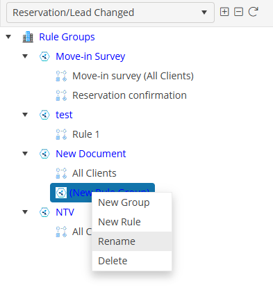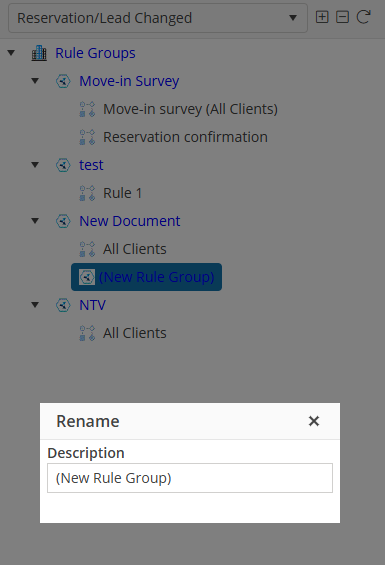 To rename a Rule Group, right click on the Rule Group and select “Rename”. Note: the default Rule Group “Reservation Created/Modified” may not be renamed.