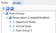 A Rule Group is a header or grouping mechanism that is used to organize similar Rules together. A Rule Group might be by Corporate Clients or, by documents that will be sent with the emails; Arrivals, Departures, Etc.