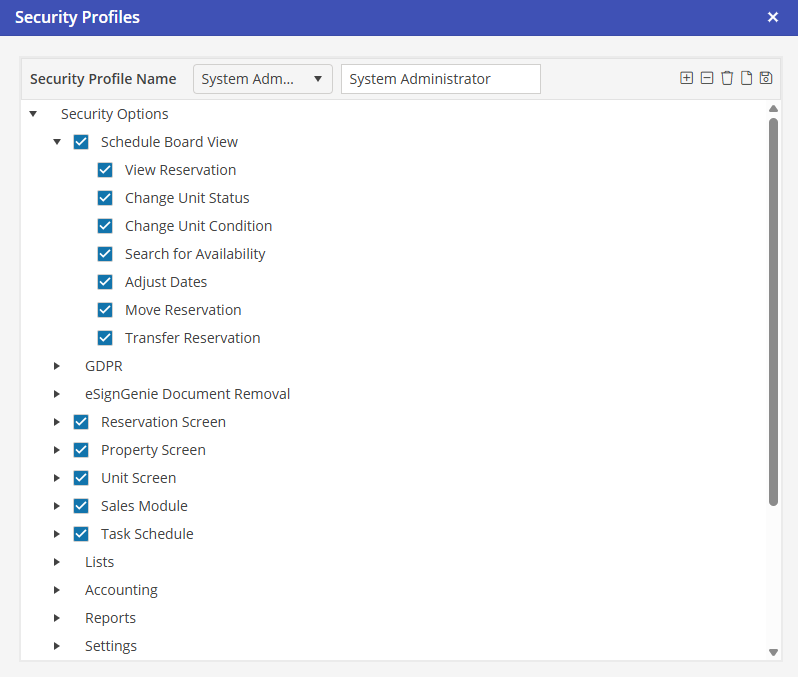 To schedule a transfer for a Reservation on the Schedule Board, the User must be granted access to Settings > Security Profiles > Schedule Board View > Transfer Reservation.