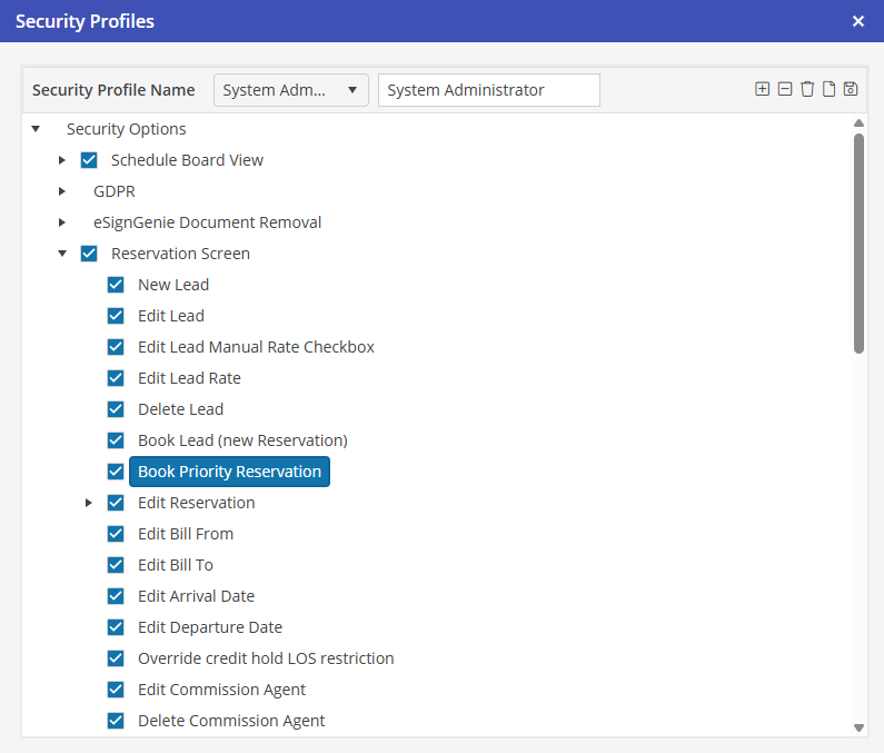 Security The following User Security must be enabled to allow booking Priority Reservations. On the Security Profile, go to Reservation Screen > Book Priority Reservation.