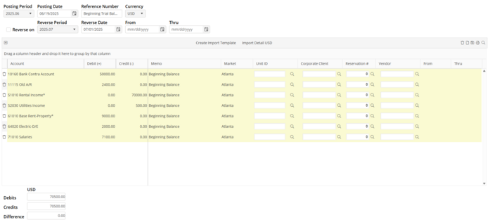 After all accounts from the Trial Balance have been entered on the Beginning Balance Journal Entry, verify that the Difference is zero.