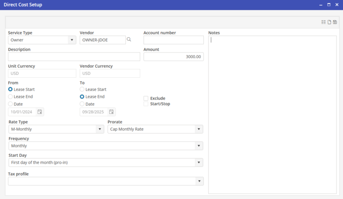 Vendor - Select the Owner Vendor.