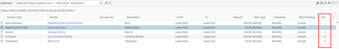 Items with an X in the S/S column will be included in the Start/Stop Management screen.