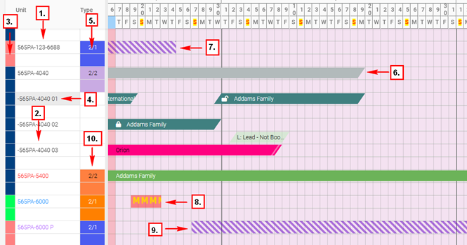 At a glance, the Unit IDs, Statuses, Contracts, and Reservation Statuses can be viewed.