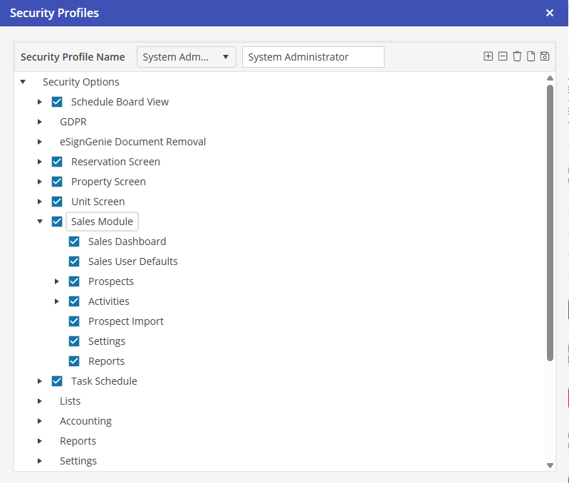 Users Access To access the Sales Module, grant Users access in Security Profiles. Users configuring the Sales Module must be granted access to Settings.