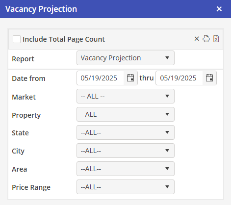Using all, none, or a combination of the system filters in the Report Criteria section, the User can create a comprehensive Vacancy Projection report.